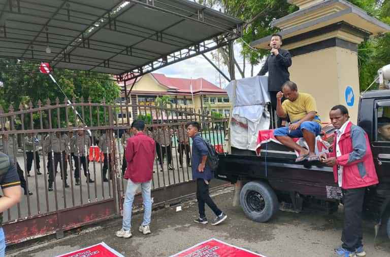 Menutup orasinya, Kevin mengingatkan bahwa massa aksi tidak membutuhkan jawaban normatif berupa kalimat “akan disampaikan ke Kapolda”, tetapi kehadiran institusi yang bertanggung jawab, berani, dan jelas sikapnya.